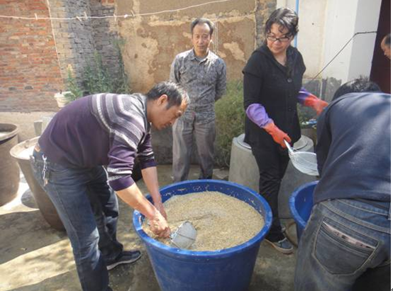 四、用催芽袋,裝半袋種子,改用多起多落浸種法,以浸種為主,浸、露結合,即露2一3小時,浸洗種子3一4小時,交換進行,大戶用水池浸種,可用放干水,在池內經(jīng)常翻動種子換氣的形式露種。