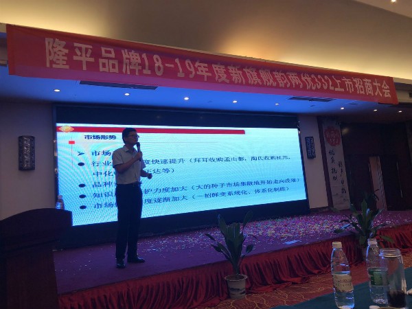 2018年6月12日,來自全省80余位代理商齊聚合肥,共同見證隆平新旗艦——韻兩優(yōu)332驚艷亮相。 上午8點(diǎn)18分,會議準(zhǔn)時在激昂奮進(jìn)的開場鼓中拉開序幕,正所謂一鼓作氣,五“鼓”豐登! 首先市場部李經(jīng)理細(xì)致分析了當(dāng)前種業(yè)形勢,直指種業(yè)面臨的痛點(diǎn)。“依靠隆平,搏出黎明”,堅(jiān)定了與會代理商和隆平合作的決心。 接著,技術(shù)服務(wù)部肖經(jīng)理向大家詳細(xì)介紹了韻兩優(yōu)332的特征特性,通過一連串的數(shù)據(jù)對比,簡單明了地突出了韻兩優(yōu)332的顯著特點(diǎn)。 隨后,隆平品牌安徽區(qū)域負(fù)責(zé)人權(quán)經(jīng)理介紹了韻兩優(yōu)332的品種定位以及運(yùn)作思路。讓與會代理商對韻兩優(yōu)332的市場運(yùn)作充滿期待。 會上,隆平品牌安徽團(tuán)隊(duì)朗誦了團(tuán)隊(duì)原創(chuàng)詩詞《風(fēng)吹稻浪,阡陌花開》,不僅給與會代理商留下了深刻的印象,也展示了安徽團(tuán)隊(duì)青春激昂、拼搏奮進(jìn)的良好精神風(fēng)貌,讓大家對隆平的信心更足了。 最后,隆平品牌負(fù)責(zé)人張一明向大家介紹了韻兩優(yōu)332在全國的品種定位,更加堅(jiān)定了與會人員將韻兩優(yōu)332做大做強(qiáng)的信心。 在一聲聲倒計(jì)時中,隆平新旗艦—韻兩優(yōu)332正式在安徽上市啟動,中國好運(yùn)稻迎來了屬于它的時刻!正如詩詞里面寫的:當(dāng)然我也愿風(fēng)吹稻浪、阡陌花開。相信選擇了隆平,選擇了韻兩優(yōu)332,也必將實(shí)現(xiàn)豐收夢!實(shí)現(xiàn)財富夢!