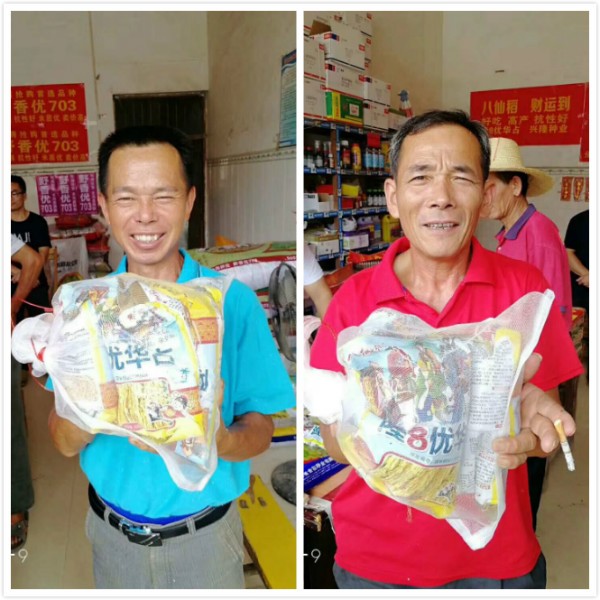 2015年區(qū)試,2016年續(xù)試,2017年國審,歷經(jīng)三年試驗示范,隆8優(yōu)華占得到了廣大農(nóng)戶經(jīng)銷商的高度認可。三年磨一劍、今朝露鋒芒,2018年的這個夏天八仙稻迎來了屬于它的時刻。 這個夏天最美的風景就是老百姓手握著著豐收的希望,臉上展露的笑容。在老百姓的心中八仙稻是這一季豐收的希望。 "我要6斤","我要9斤","我要20斤",門店里此起彼伏的聲音里是老百姓對隆8優(yōu)華占的信賴和認可,是他們對豐收的渴望。 火紅的六月,熱情的農(nóng)戶。品種這么多,你需要一個高產(chǎn)高抗米質(zhì)優(yōu)的品種,而我就是你最適合的那一個。一包又一包八仙稻在老百姓的期盼中走進千家萬戶,為他們送去了豐收的希望。