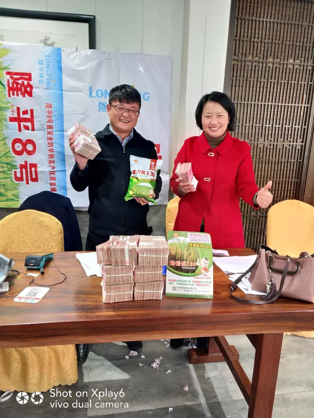 11月28日,湖北荊門漳河晶兩優(yōu)華占預(yù)定會,到會80人,預(yù)定近4000斤,預(yù)訂量超過今年銷量,會后農(nóng)戶爭先開票領(lǐng)種,入戶1500余斤,當場現(xiàn)金加微信轉(zhuǎn)賬收款6萬元,超出零售商預(yù)期:有行動才會有結(jié)果,付出定有回報!