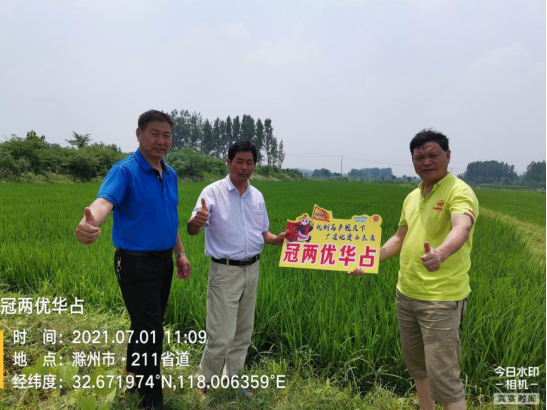 公司栽培專家程小潑督查冠兩優(yōu)華占示范片 。