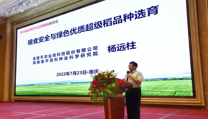 會上,楊遠(yuǎn)柱院長以《糧食安全與綠色優(yōu)質(zhì)超級稻的選育》為題作專項(xiàng)報告,報告結(jié)合新時期國家糧食安全對超級稻選育發(fā)展形勢進(jìn)行了分析,并就隆平高科品種選育進(jìn)展以及晶兩優(yōu)華占的選育、特征特性、栽培技術(shù)要點(diǎn)等內(nèi)容做了詳盡的分享。晶兩優(yōu)華占十年榮耀之路,正是從選育到栽培的孜孜不倦,從推廣到營銷的凝心聚力、搶抓機(jī)遇一步步所成就。最后楊院長又為大家?guī)砹诵碌钠废?mdash;—颶兩優(yōu)系列的分享,颶兩優(yōu)系列是繼臻兩優(yōu)、瑋兩優(yōu)系列后的又一強(qiáng)勢品系,颶820S是以隆臻36S、華瑋338S為親本,改良培育出的綠色優(yōu)質(zhì)廣適高產(chǎn)不育系,堅持優(yōu)良品種的培育,以驅(qū)動公司產(chǎn)業(yè)快速發(fā)展,從源頭保障國家糧食安全。