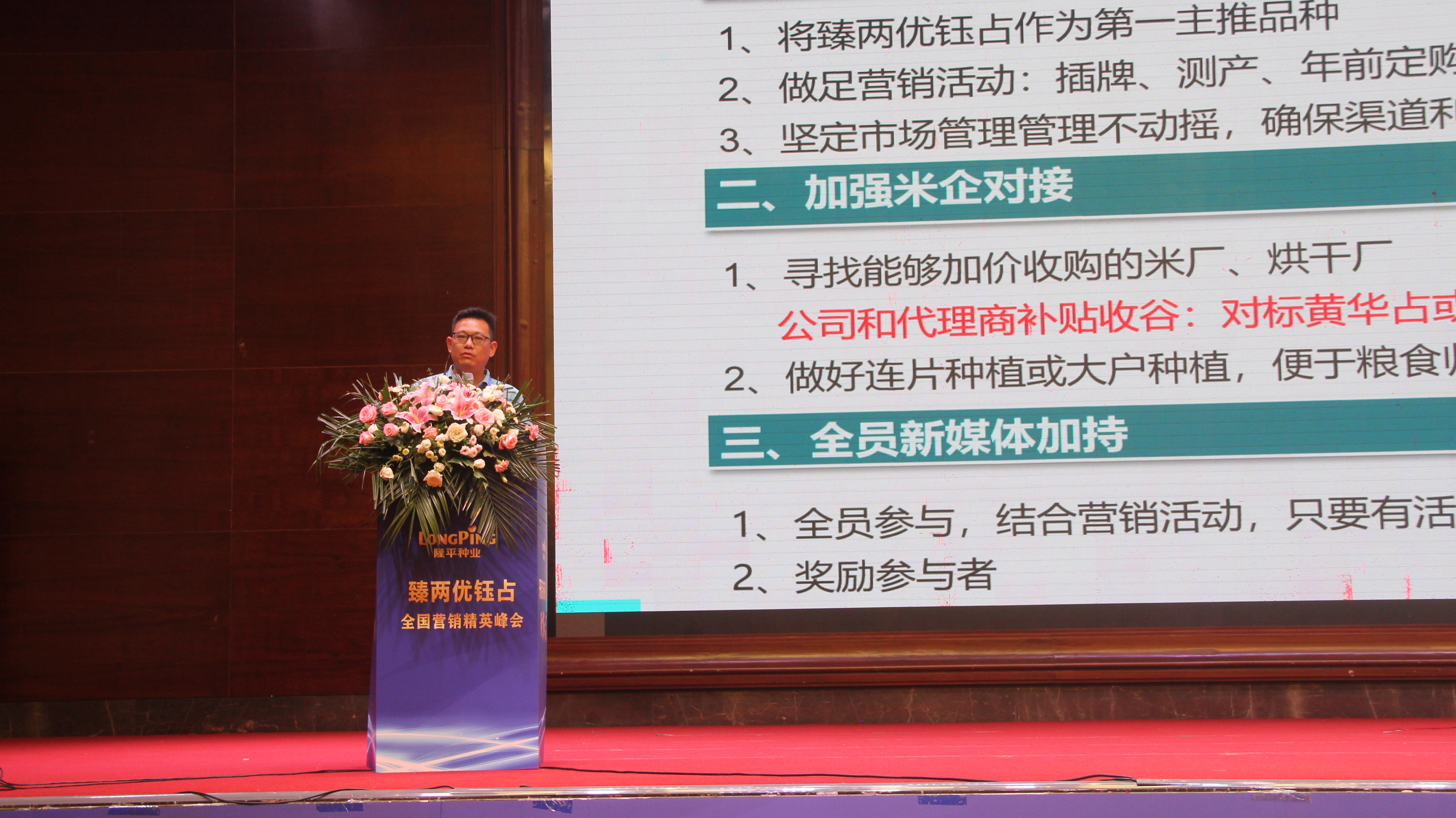 會議最后,隆平種業(yè)總經(jīng)理盧成林先生對會議進行了總結(jié),盧總表示,在當前市場形勢下,臻兩優(yōu)鈺占品種特性高度切合市場需求和市場發(fā)展趨勢,我們要搶抓機遇、乘勢而上,把握好臻兩優(yōu)鈺占快速增長的重要契機,聚力前行;我們要精心做好渠道布局,建設(shè)高質(zhì)量運營隊伍,全力支持系統(tǒng)性營銷活動;我們要在市場管控,缺口營銷等方面持續(xù)發(fā)力,舉全公司之力將臻兩優(yōu)鈺占打造成新一代超級大單品!希望廣大合作伙伴聚焦隆平、保持定力、堅定信心、敢為人先,追求卓越,讓我們共同開創(chuàng)鈺占新時代,開啟未來財富之門!