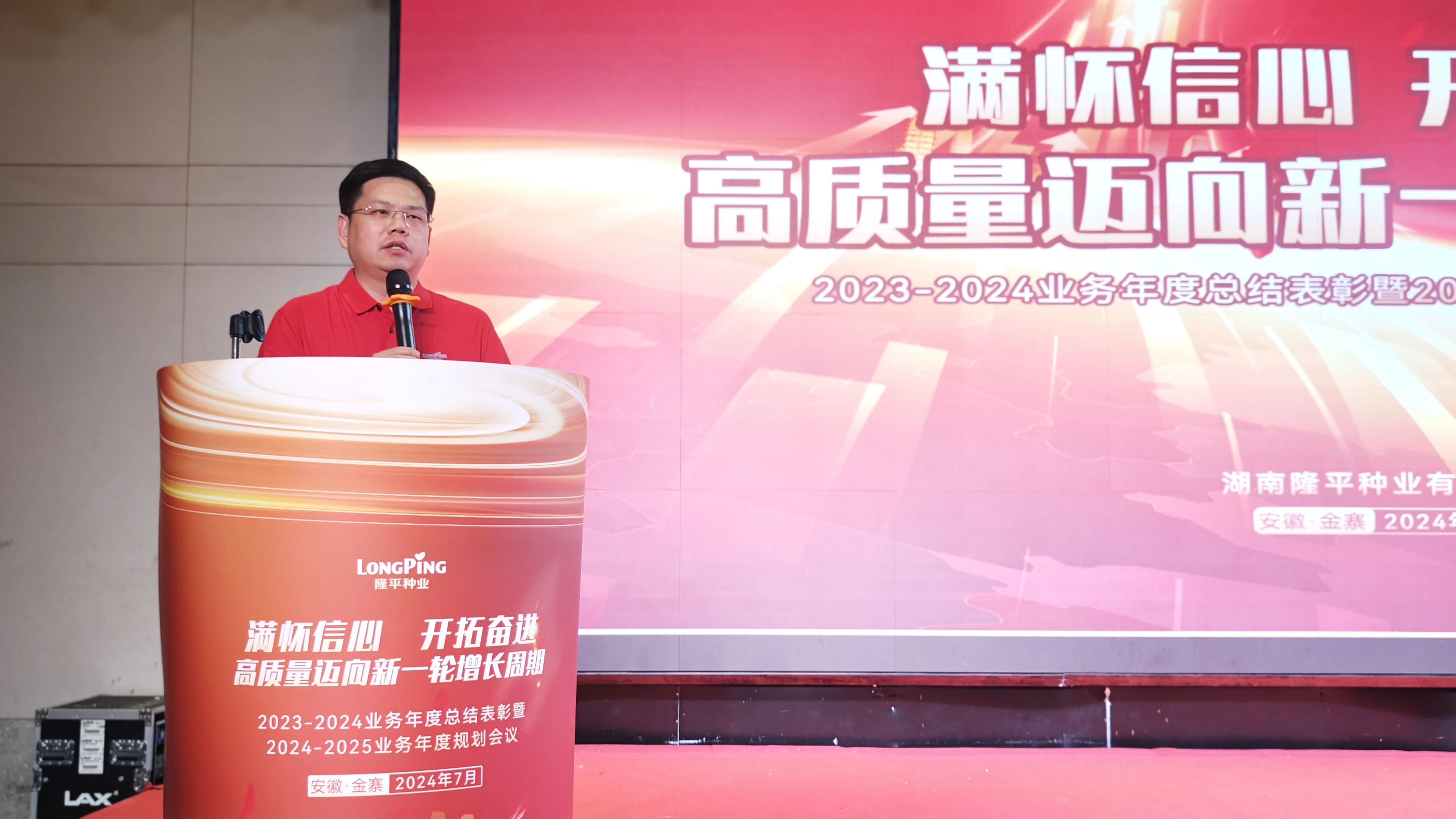 會(huì)上,盧成林總經(jīng)理充分肯定了全體隆平人在23-24業(yè)務(wù)年度工作中取得的成績(jī),并表示公司將在集團(tuán)的正確領(lǐng)導(dǎo)下,堅(jiān)定不移地走高質(zhì)量發(fā)展路線。盧總?cè)娣治隽水?dāng)前面臨的挑戰(zhàn)和機(jī)遇,他強(qiáng)調(diào),公司當(dāng)前正處于重大發(fā)展機(jī)遇期,全體隆平人要滿懷信心,開拓奮進(jìn),把握形勢(shì)搶抓機(jī)遇,高質(zhì)量邁向新一輪增長周期。盧總明確了公司24-25業(yè)務(wù)年度的指導(dǎo)思想和目標(biāo),并就下階段工作進(jìn)行了系統(tǒng)部署。他指出大營銷線要聚焦打造新一代大單品、大品系,以增量帶動(dòng)存量,搶抓市場(chǎng)機(jī)遇,實(shí)現(xiàn)總銷量進(jìn)一步增長;服務(wù)保障線要圍繞“五維增效”機(jī)制建設(shè),進(jìn)一步提升服務(wù)效能,激發(fā)團(tuán)隊(duì)活力。盧總向全體隆平人提出五點(diǎn)希望和要求:1.銘記初心,傳承隆平精神,做一個(gè)正能量、守紀(jì)律、負(fù)責(zé)任、有使命的隆平人;2.持續(xù)提升客戶與公司合作的體驗(yàn),為客戶創(chuàng)造價(jià)值;3.每位員工都要有主人翁意識(shí),充分認(rèn)識(shí)到降本增效是每一位隆平人的事,實(shí)現(xiàn)銷量最大化、費(fèi)用最小化;4.根據(jù)公司指導(dǎo)思想,結(jié)合自己工作目標(biāo),系統(tǒng)謀劃全年工作,做到有目標(biāo)、有思路、有方案、有執(zhí)行;5.堅(jiān)定信念、實(shí)事求是、艱苦奮斗、勇于勝利。全體隆平人要同心協(xié)力,在新一輪增長周期中,將公司做得更穩(wěn)、更強(qiáng)、更大!