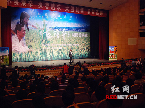 3月18日,一部展現(xiàn)雜交水稻之父、中國工程院院士袁隆平傳奇人生的電影《袁隆平》在湖南大劇院舉行首映式,湖南省委副書記、省長周強,省委常委、宣傳部部長路建平,副省長徐明華,省政協(xié)副主席譚仲池等領導,袁隆平院士夫人鄧哲以及劇組主創(chuàng)人員出席了首映式。近500名觀眾參加首映式并觀看影片。