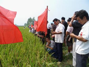 9月3日,我公司代理商周憲國分別于西流河和長坰口組織并召開了C兩優(yōu)608和準(zhǔn)兩優(yōu)608兩品種的現(xiàn)場觀摩及室內(nèi)交流會,參會人數(shù)達(dá)140余人,會場氣氛十分熱烈。參會人員除零售商以外還有與每位零售商一同前來參會的數(shù)位種植大戶。