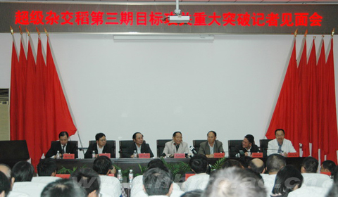 9月19日下午, 超級雜交稻第三期目標攻關重大突破記者見面會在湖南雜交水稻研究中心舉行。雜交水稻之父袁隆平院士,農業(yè)部驗收組組長、中國水稻所所長程式華,湖南省農業(yè)廳總農藝師劉年喜,湖南省農科院黨委書記何鐵林、院長鄒學校,隆回縣委書記鐘義凡參加了記者見面會。見面會由湖南省政府新聞辦公室新聞發(fā)布處處長陽芳菲主持。