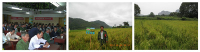 在室內(nèi)會議上,江西分公司銷售部彭經(jīng)理對再生稻的特征特性、栽培技術(shù)等方面給大家答疑解惑。并且,對隨手采來的穗子進行的現(xiàn)場有獎競猜活動,使會議達到了高潮,再生稻主穗基本在190粒左右,結(jié)實率85%以上。