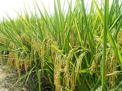 上午8點(diǎn)左右,參會人員一同前往韶關(guān)市仁化縣董塘鎮(zhèn)觀看了準(zhǔn)兩優(yōu)608示范田的表現(xiàn)。該品種在種植生長天氣較為惡劣的條件下仍突出表現(xiàn)了其抗逆能力強(qiáng)、穗大粒足、穩(wěn)產(chǎn)高產(chǎn)的特性。植株矮壯、莖稈粗壯、柱形松散適中、葉下禾等均為該品種抗倒伏能力強(qiáng)的特征表現(xiàn)。觀摩之后,各代理商和零售商均表示收獲很大。