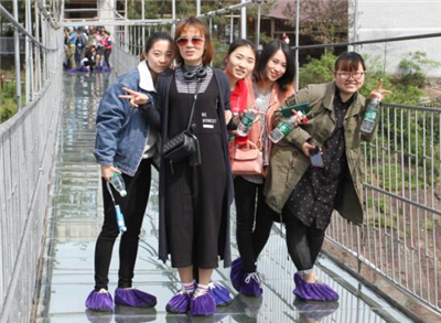 隨后大家繼續(xù)登山游覽,上美女峰頂,遠眺湘鄂贛革命根據(jù)地全景,賞三皇山丹霞奇觀,看山間飛瀑,最后到達全中國最長的3公里絕壁棧道,這也是國內首條音樂玻璃棧道,透過明亮的玻璃就可以清晰的看到下面的懸崖峭壁,體驗心跳加速的感覺,即使這樣仍然阻擋不住大家的熱情,紛紛用腳踩出各種自己喜愛的音符,此起彼伏的音樂旋律和大家的歡聲笑語交織成一首動人的山歌回蕩在山風中,讓大家工作中的緊張和壓力得到了盡情的釋放。