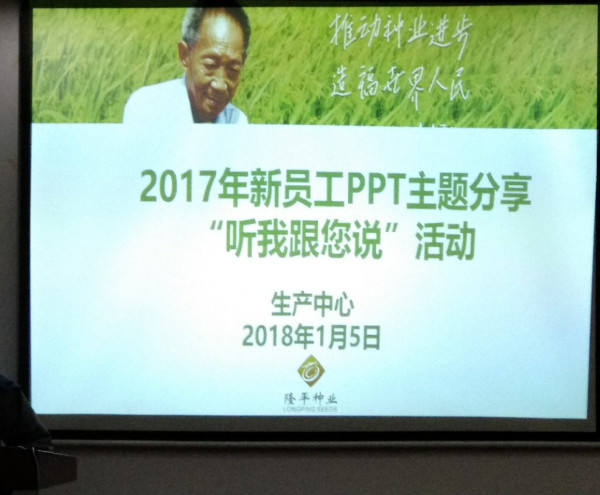 1月5日,生產(chǎn)中心2017年新員工PPT主題分享“聽我跟您說”活動在公司三樓會議室順利舉行。公司總經(jīng)理助理鄧總、營銷支持部傅經(jīng)理、行政人事中心企業(yè)文化主管及生產(chǎn)中心員工共計50余人參加。 新員工PPT主題分享“聽我跟您說”活動是生產(chǎn)中心近年來一直堅持的傳統(tǒng),旨在加強生產(chǎn)中心年輕團隊的梯隊建設(shè),提高新員工PPT制作水平與個人演講表達(dá)能力,總結(jié)與分享在基地的工作經(jīng)歷。每年分享會,新員工總給帶給我們諸多驚喜和感悟,因此,分享會也成了生產(chǎn)中心最受期待的活動之一。 此次分享會共有15位來自各個生產(chǎn)基地新員工進行了分享。大家分別就自己近半年來的工作生活情況,圍繞“自我挑戰(zhàn)”、“成長提升”、“經(jīng)驗分享”、“抓生產(chǎn)質(zhì)量”、“過程監(jiān)控”、“責(zé)任心”、“問題解決”、“陽光心態(tài)”等方面進行了精彩分享。他們的分享或激情昂揚、或深入透徹、或幽默風(fēng)趣、或內(nèi)容豐富,讓我們了解了他們作為一個隆平生產(chǎn)人的經(jīng)歷和成長,盡管他們對工作、對生活有著各自的感悟和收獲,但我們聽到了他們作為一名生產(chǎn)人,作為一名隆平人的共同的心聲,那就是責(zé)任、共贏、成長、感恩。 新員工分享結(jié)束后,生產(chǎn)中心一家人進行了座談交流。作為前輩,老員工們對新員工的成長進步表示祝賀和鼓勵,同時也提出了他們的期望,希望年輕一輩的生產(chǎn)人繼續(xù)發(fā)揚吃苦耐勞的精神,沉下心來,扎扎實實做好生產(chǎn)工作;養(yǎng)成良好的工作習(xí)慣,下到田間地頭,隨時記錄發(fā)現(xiàn)問題,多問,多思考,多向前輩請教。 通過分享會,全體生產(chǎn)人統(tǒng)一了思想和認(rèn)識,一顆種子悄然萌芽,大家認(rèn)識到:我們是負(fù)責(zé)雜交水稻種子生產(chǎn)的,新員工就是我們的“種子”,代表生產(chǎn)中心的希望,他們的茁長成長就是部門的發(fā)展成長。 最好的我們在最好的時間遇到了最好的平臺——隆平種業(yè)。2018,我們蓄勢待發(fā)!
